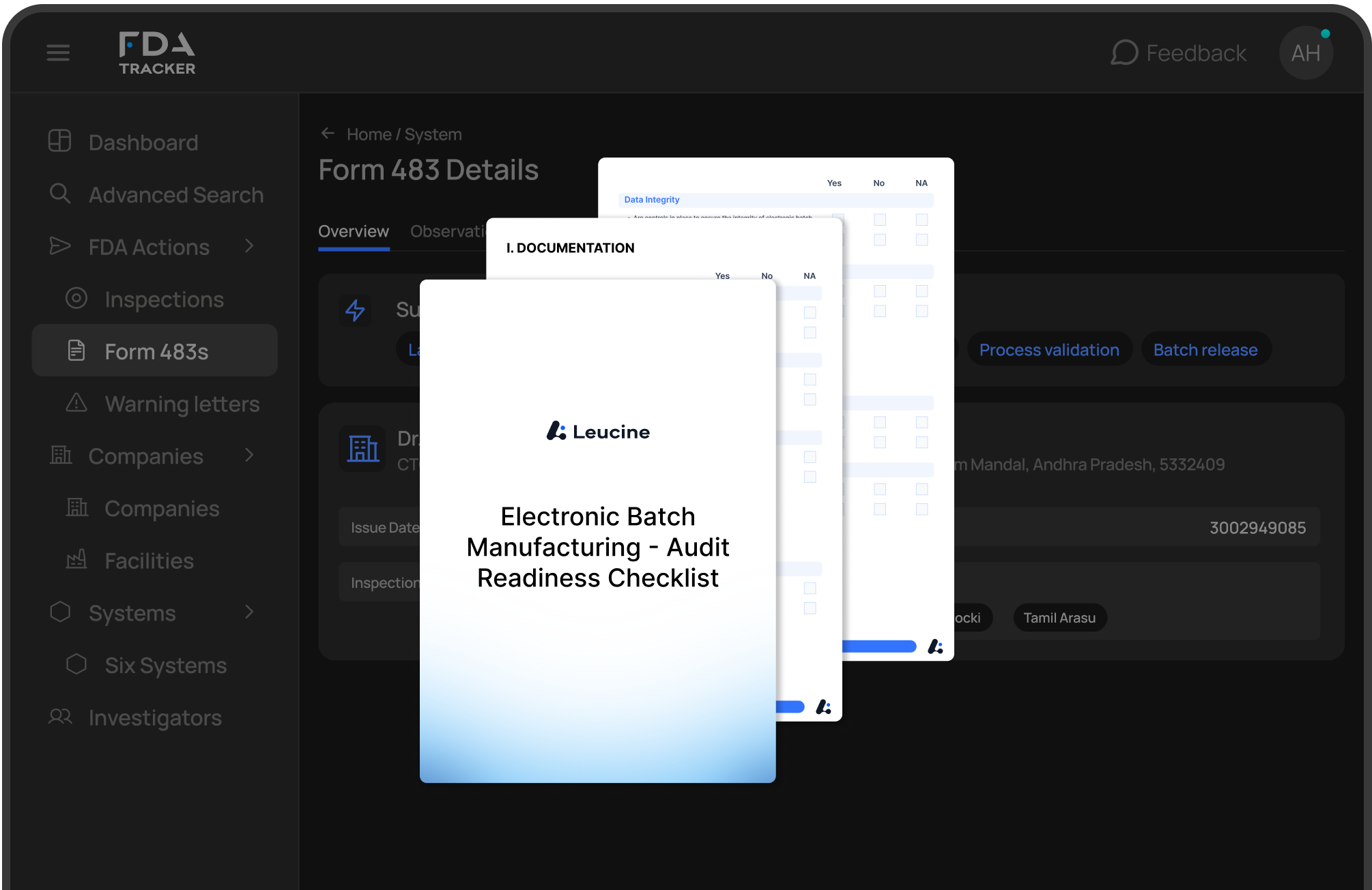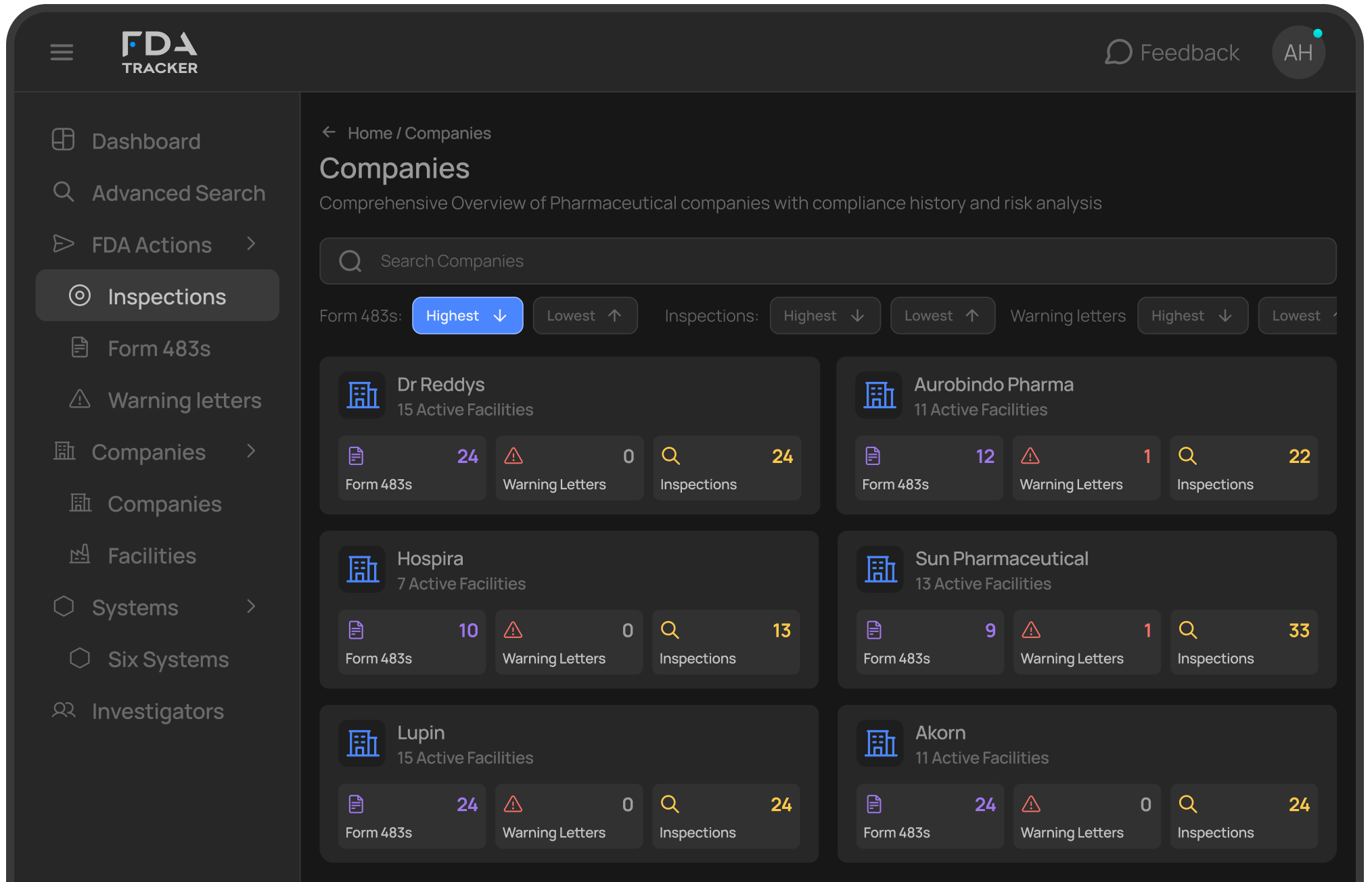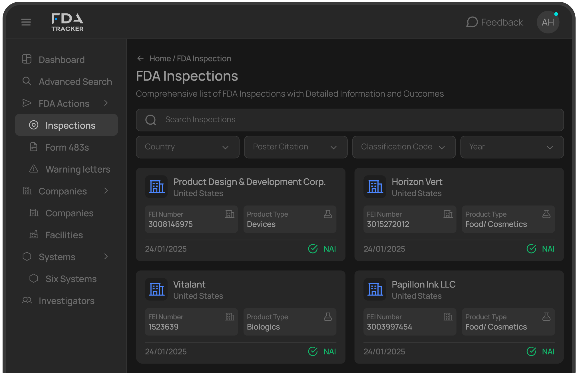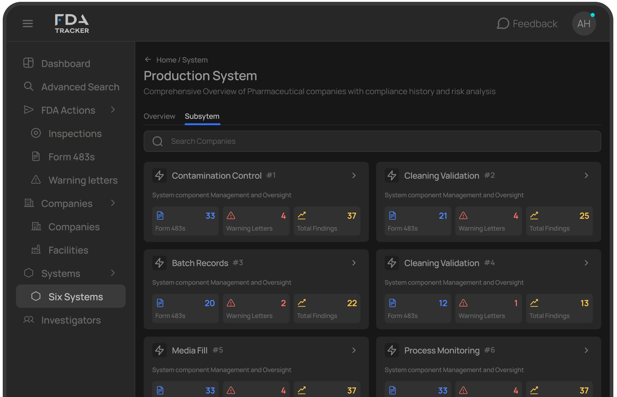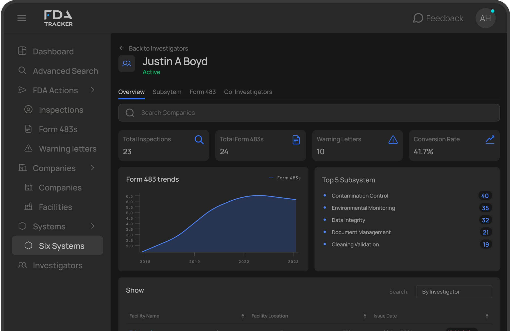 Monitor FDA Six Systems, Analyse 483s & Investigators
